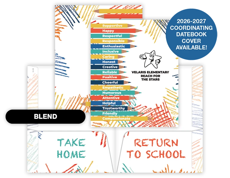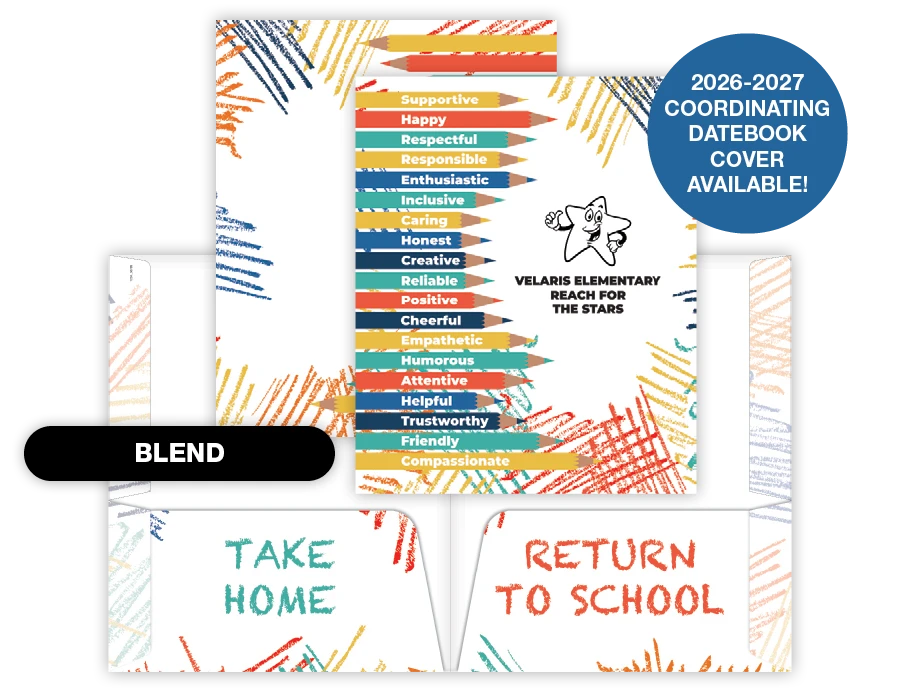Give your take-home folders a personal touch by adding your school name and mascot. These custom pocket folders help keep students organized while showcasing your school pride. Minimums apply.